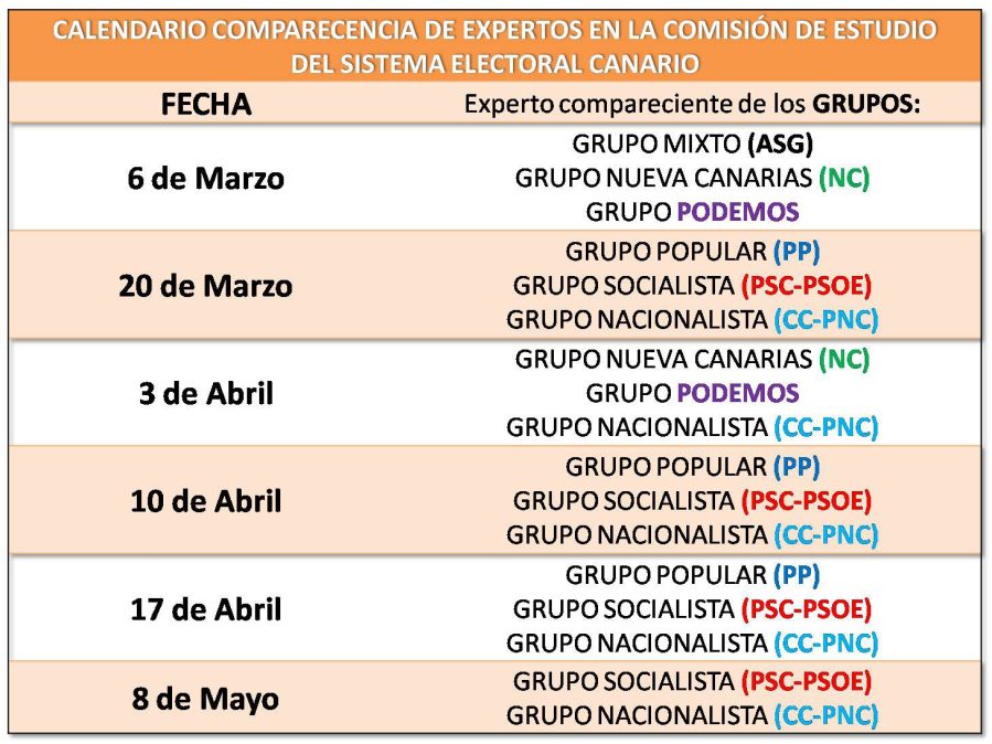 ← Calendario de comparecencia de expertos en la Comisión de Estudios sobre la Reforma Electoral de Canarias