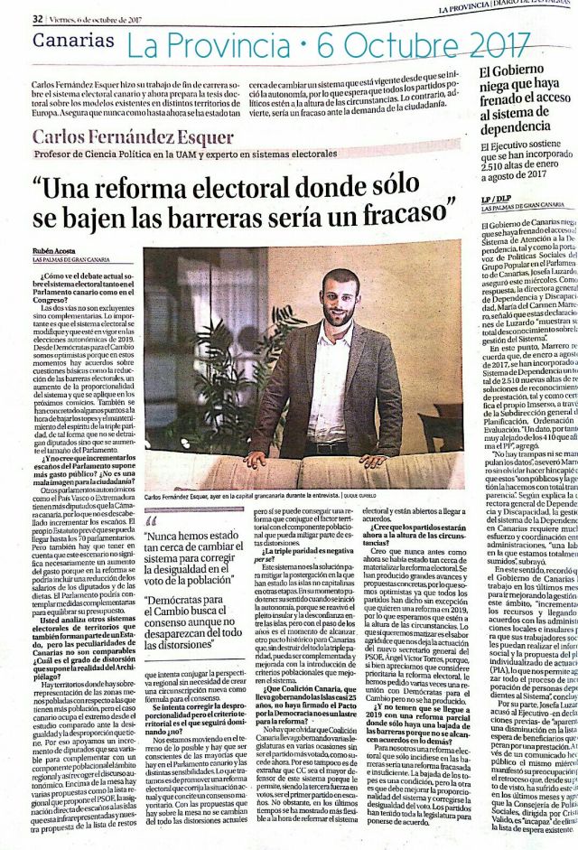 Les presentamos una imagen de la entrevista realizada por La Provincia a Carlos Fernández Esquer, profesor de Ciencia Política en la Universidad Autónoma de Madrid y experto en sistemas electorales.