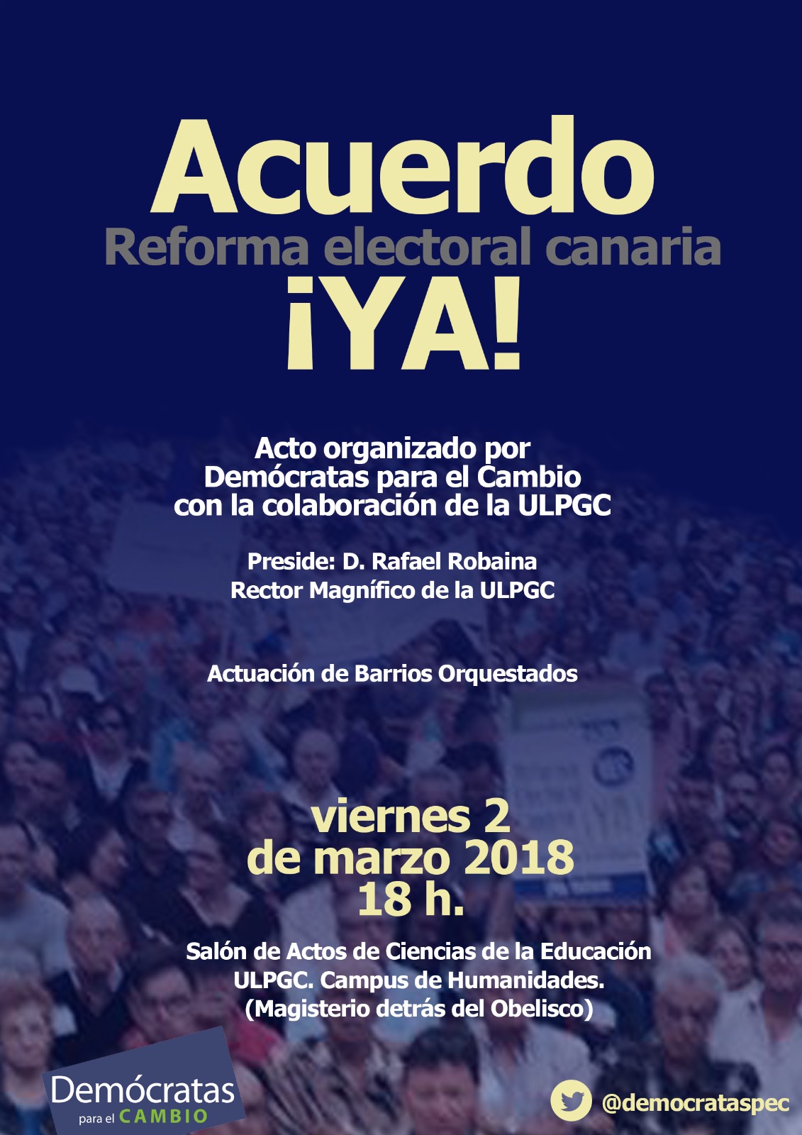 Actuará Barrios Orquestados y podrás obtener nuestro libro ‘Textos para la reforma electoral de Canarias’.